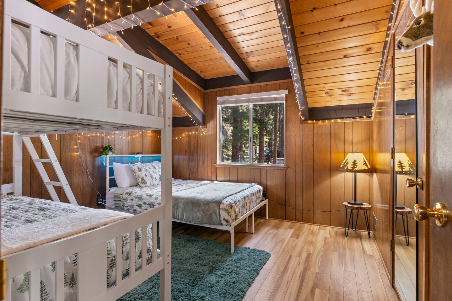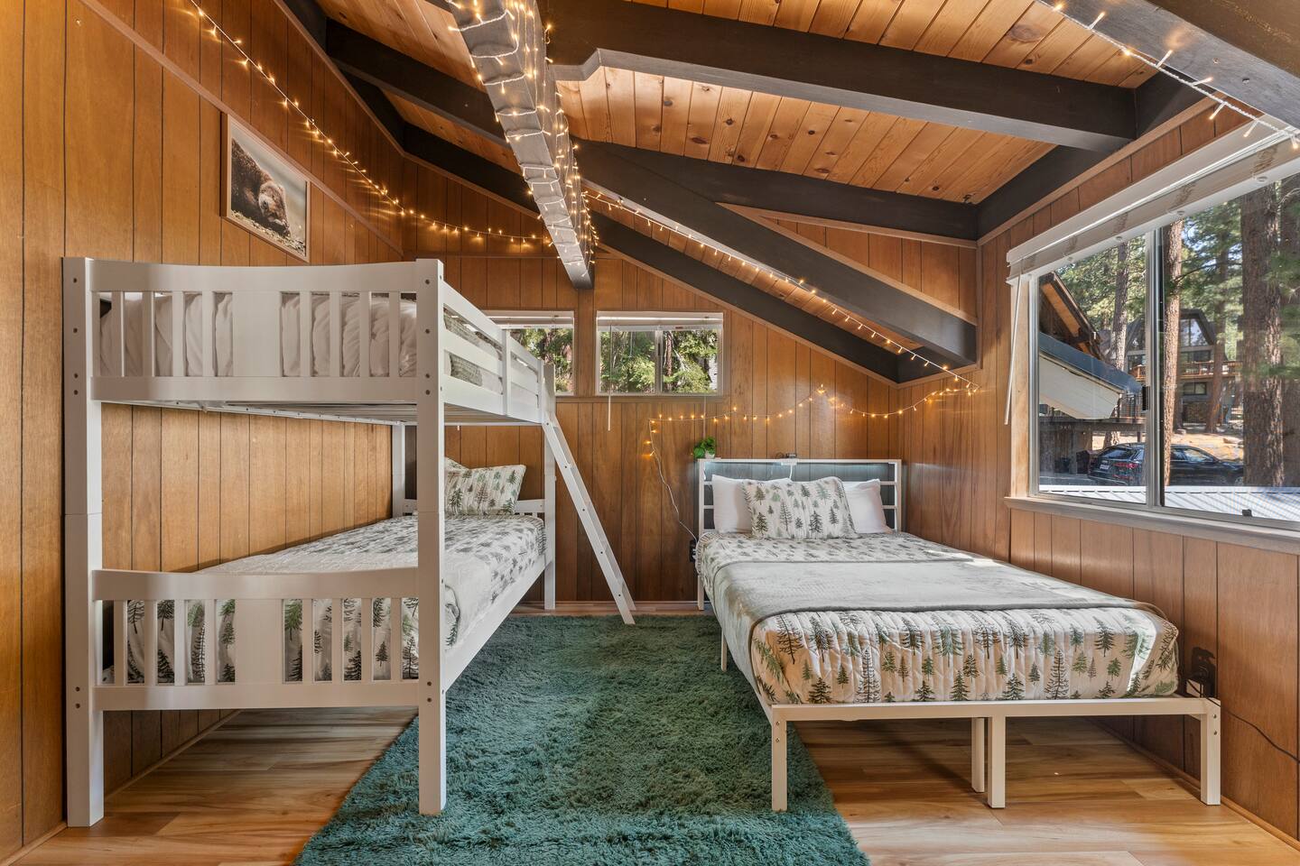 Welcome to our rustic-modern 2-story cabin in Incline Village, Lake Tahoe! With 3 bedrooms, 2 bathrooms, a loft with an arcade game, and space for up to 9 guests, it’s the perfect retreat. Enjoy the large outdoor deck with patio furniture, outdoor games, and stunning views. Just a 10 min drive from Kings Beach and Sand Harbor and close to restaurants and shops. Inside, find a fully stocked kitchen, coffee cart, bar cart and cozy bedrooms with light-up bed frames Book now for your dream vacation!